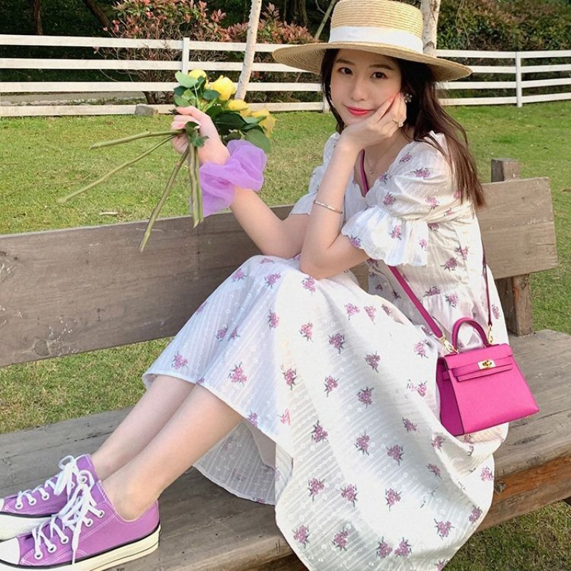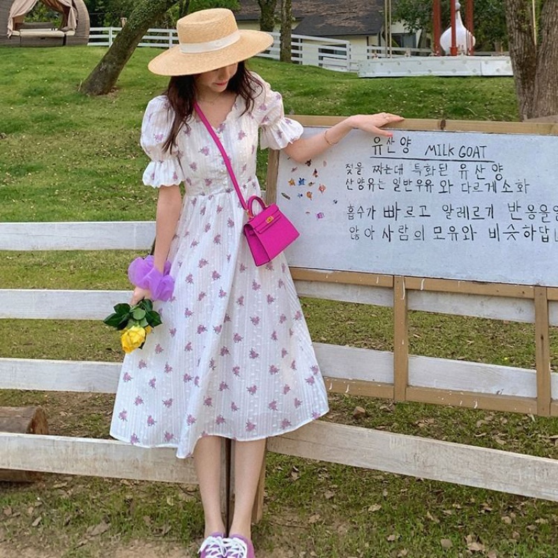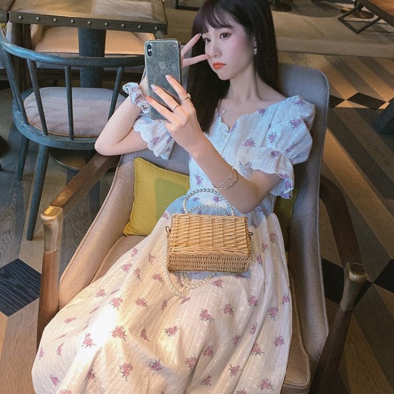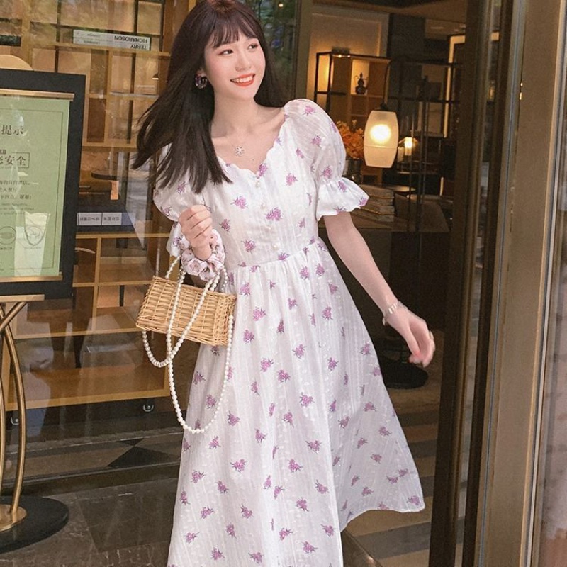 2021 Spring new Korean version Broken Flowers Fairy White dress Dress Horn sleeves Long version Mori's first love nepotism dress child