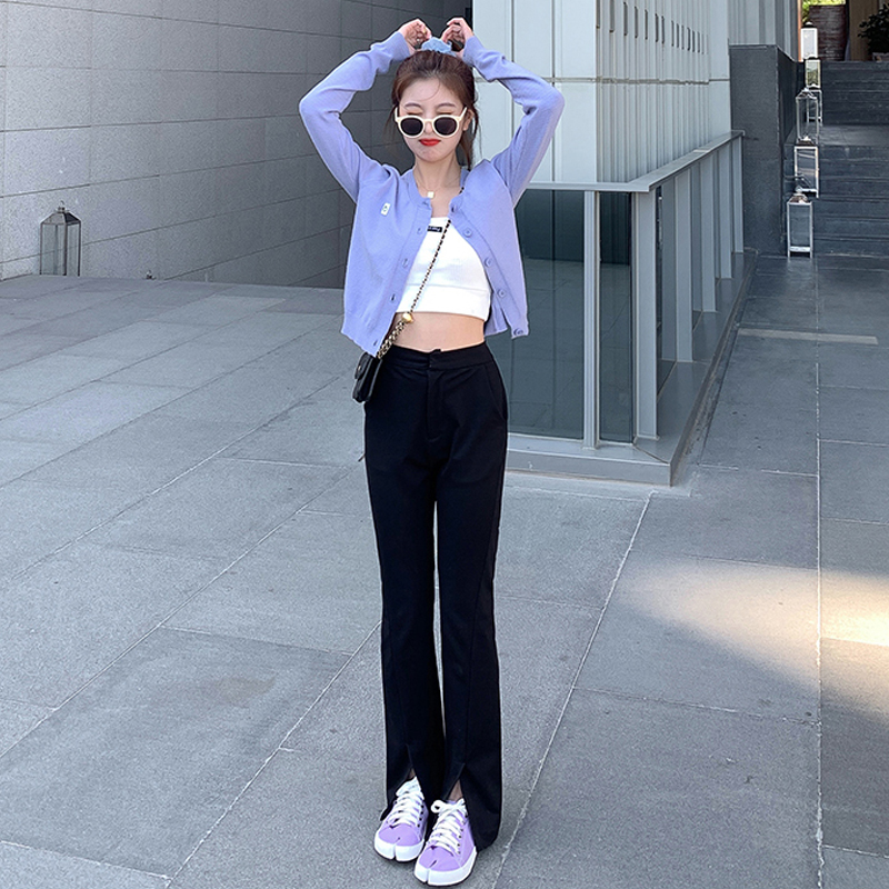 Maternity suit pants spring split belly pants spring and autumn thin leggings outside wearing tide mom does not drop the black pants