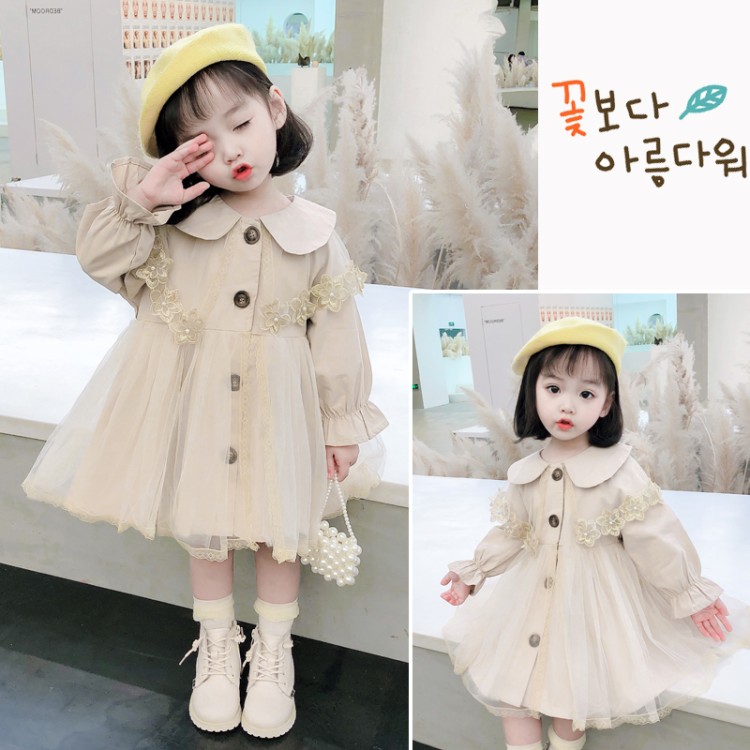 Girl Windjersey Spring Autumn Jacket Children 2022 new Inn Wind Coat Girl baby Han's version of the long version of the tide