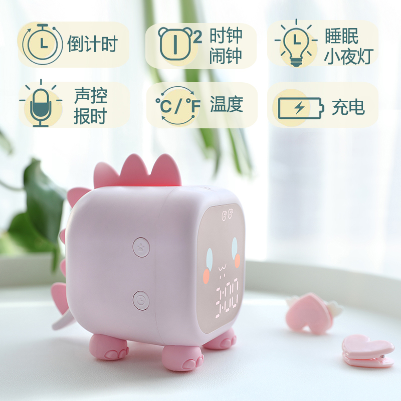 Pink-Fun Dragon-Countdown-Clock-Alarm clock-Night light-Thermometer