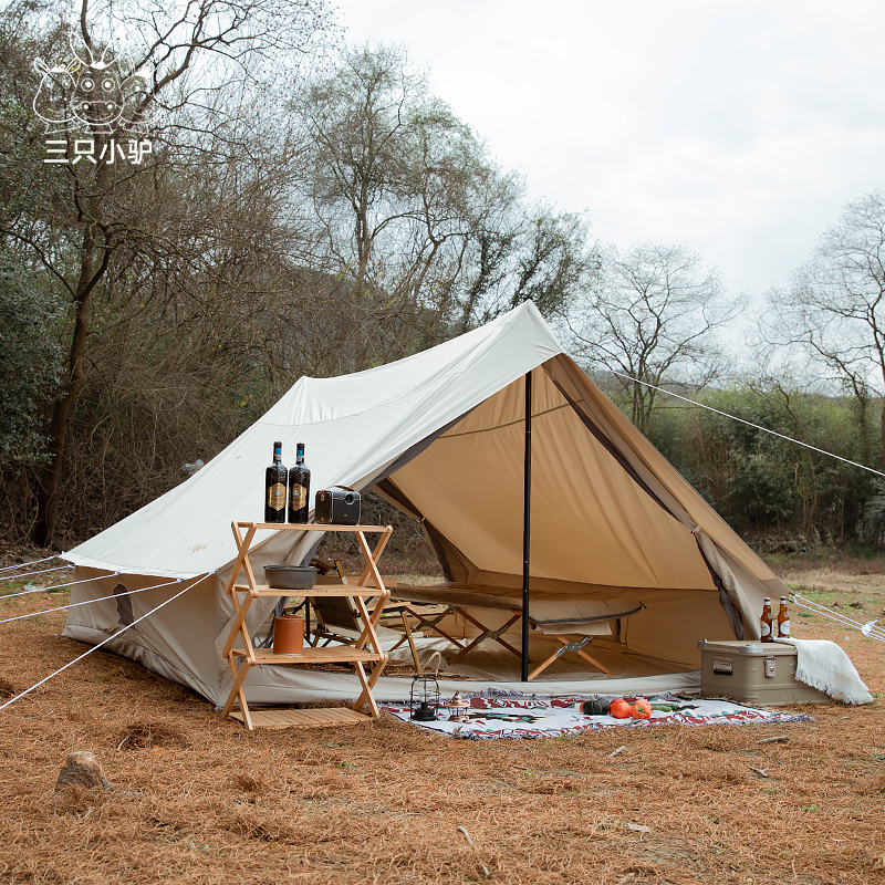 Retro house-shaped outdoor rainproof camping equipment luxury thickened cotton super large camping eaves tent