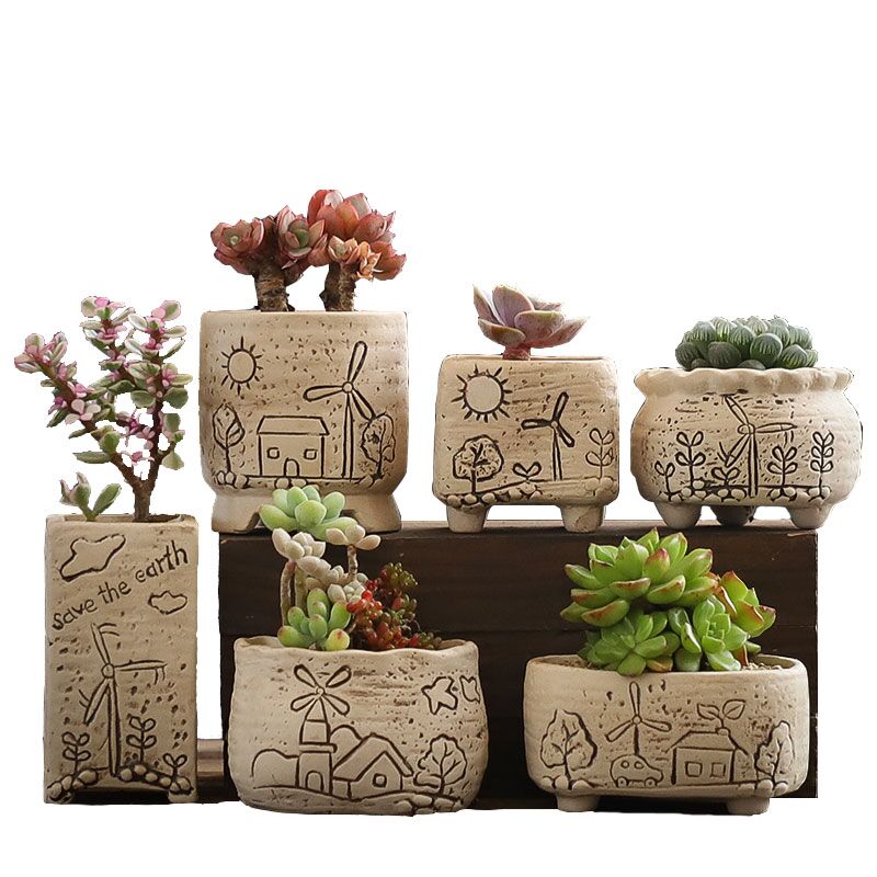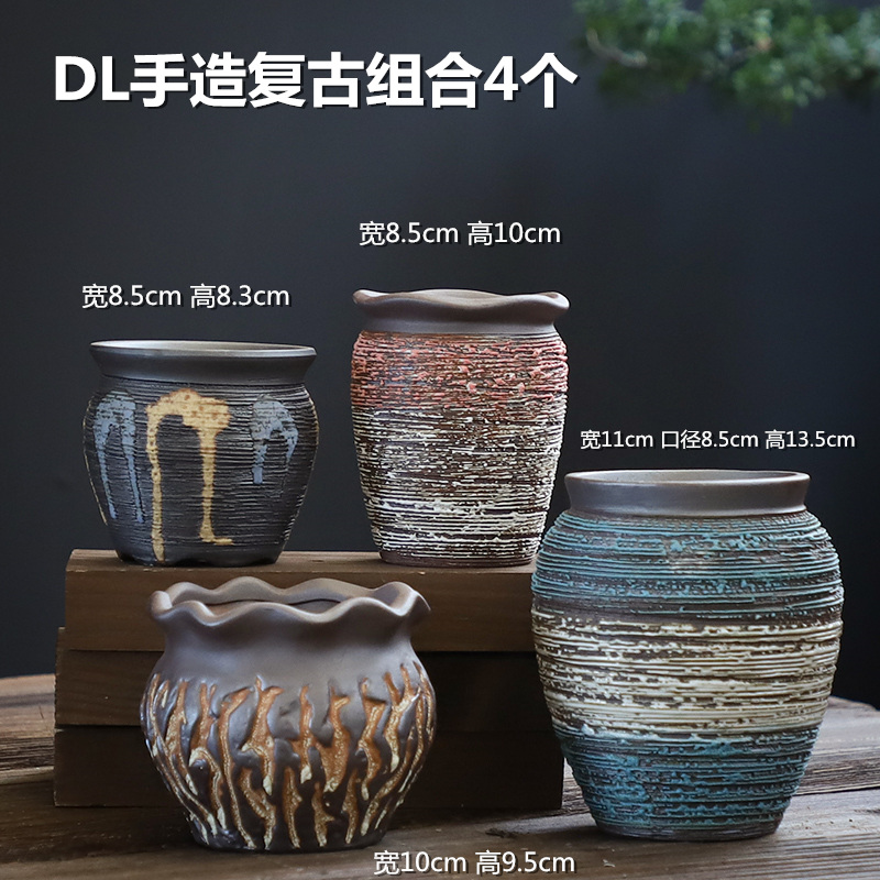 Succulent pots of stoneware breathable size caliber old pile ceramic vintage plant set combination creative special price clearance