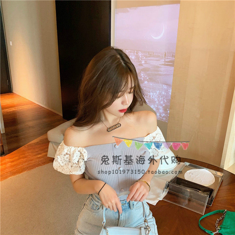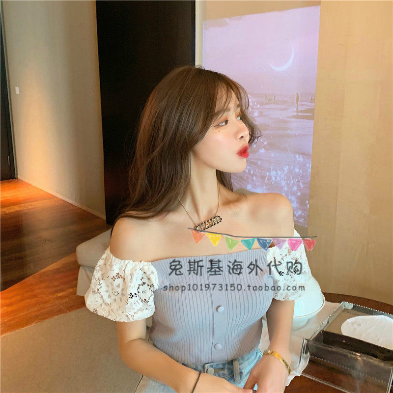 Japan SLY Retro Japanese Sexy Collar Shoulder Ice Silk Knitted Shirt Joker Lace Short Sleeve Jacket