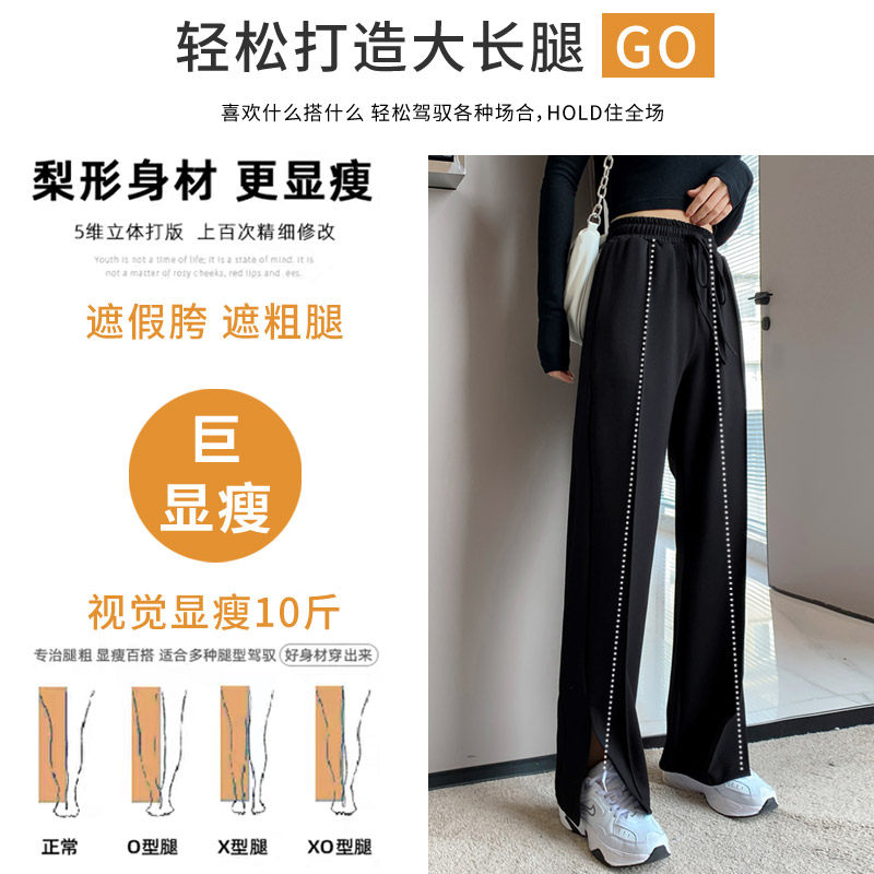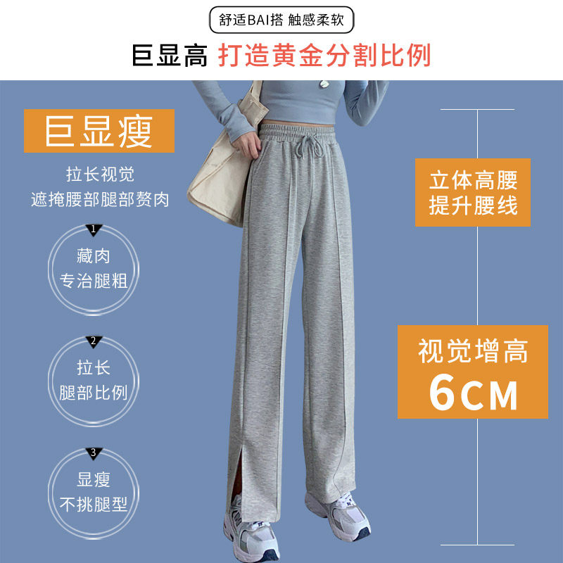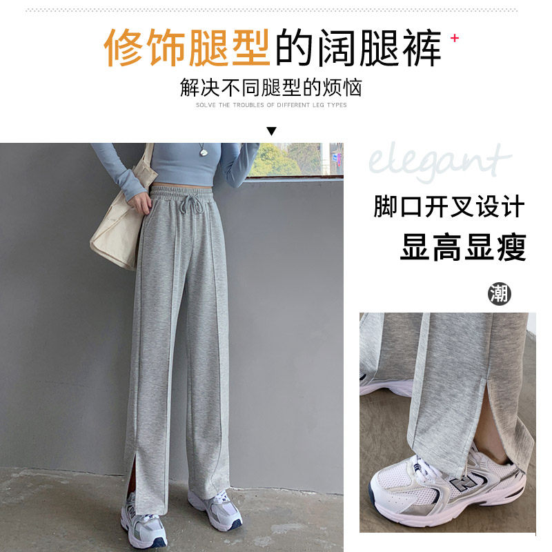 Open Fork Casual Wide Pants Woman Spring Autumn High Waist Pituitary Sensation Slim Movement Pants Loose Straight Drum Long Pants Microhorn Pants Summer