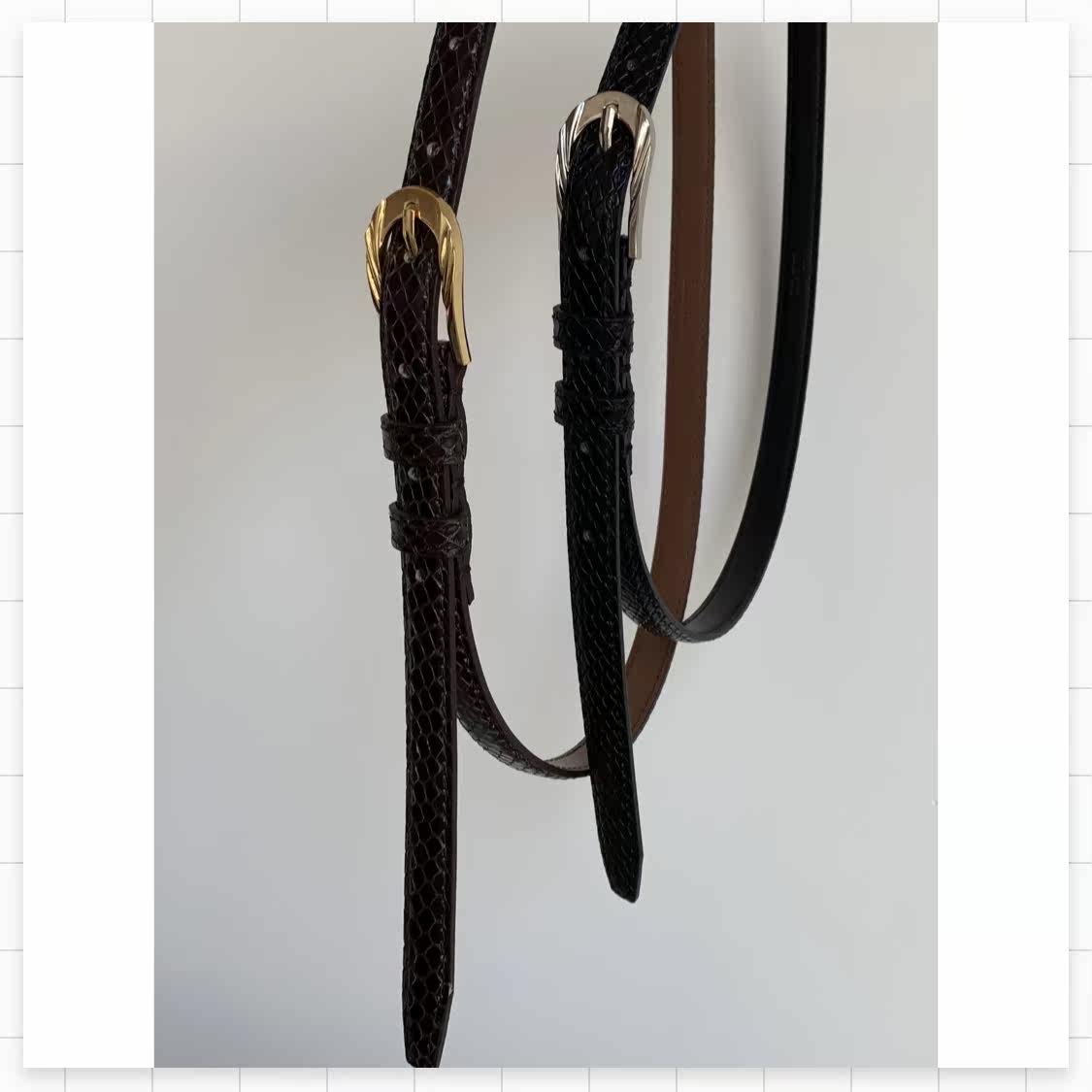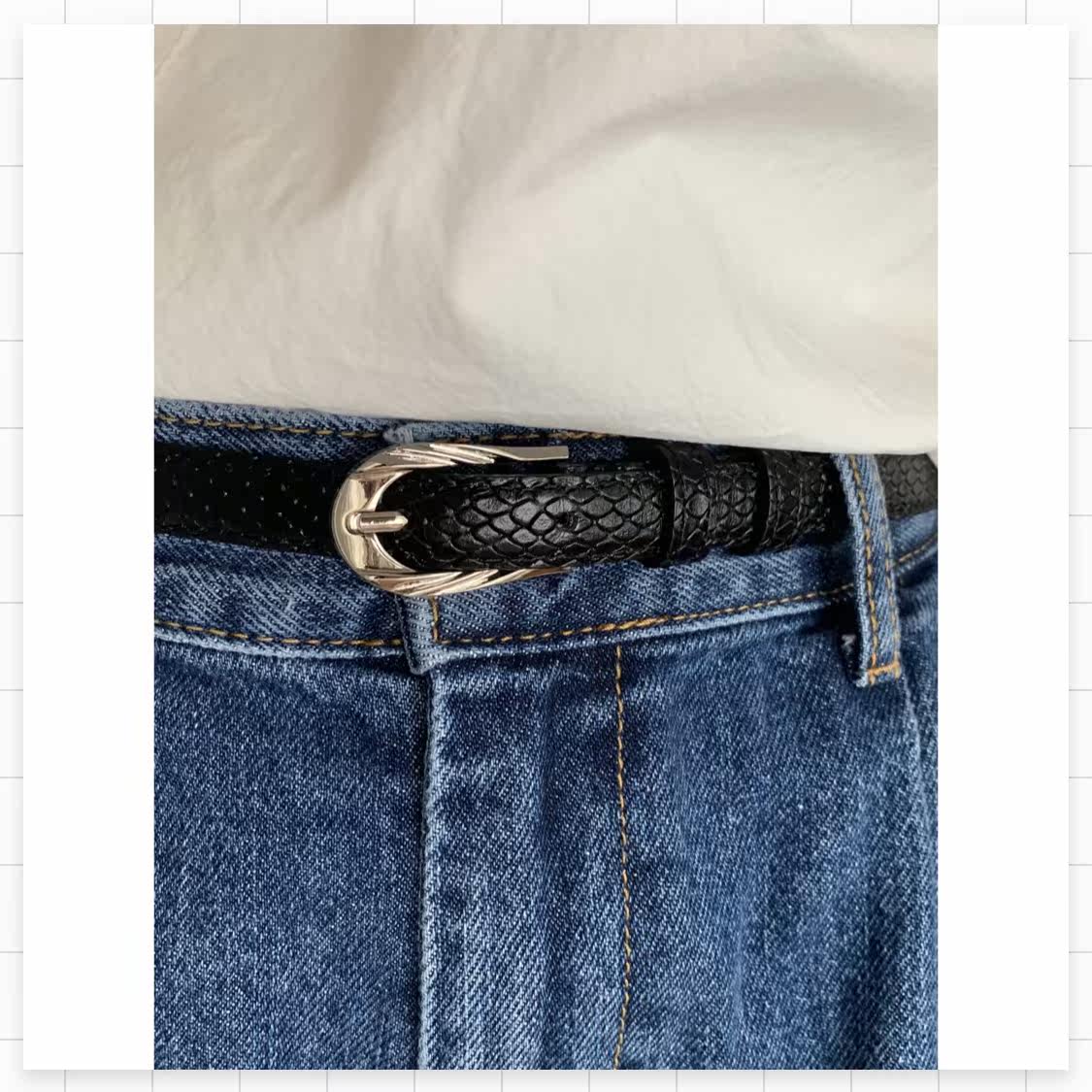 (FARM) crocodile tattoo leather belt cow leather belt trendy classic 100 lap brown gold button black silver buckle spot