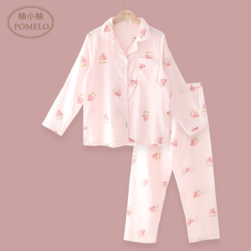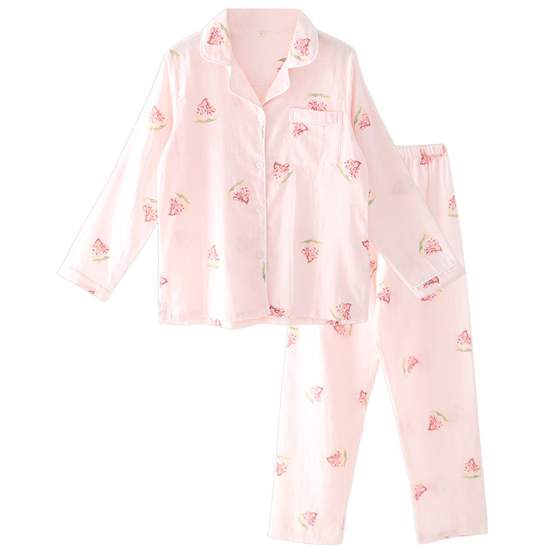 Spring and summer thin section simple fruit Japanese printing cotton long-sleeved pajamas pajamas cotton gauze home service set women