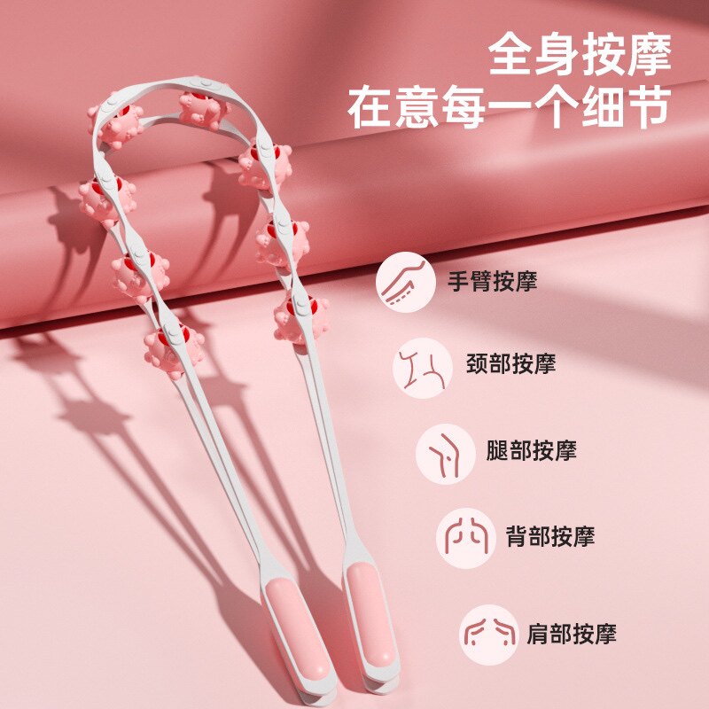 Ball bearing pull back bar massager open back shoulder neck and waist leg roller massage with muscle relaxes ball backer