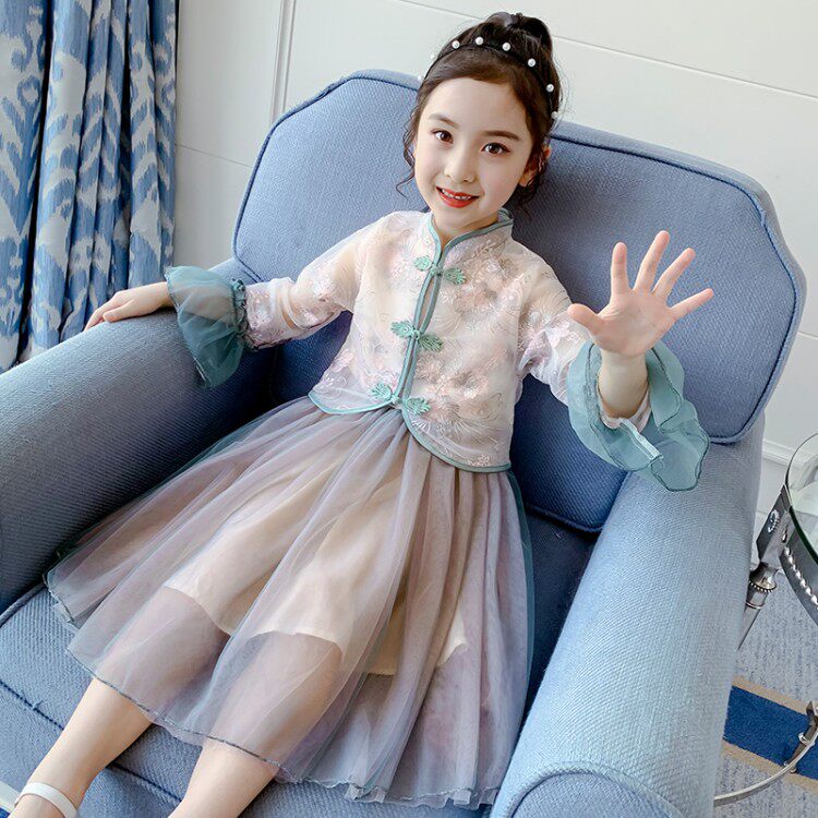 Buckden Girls Hanfu Dress Summer new Children's suit skirt Chinese style princess dress two-piece set r