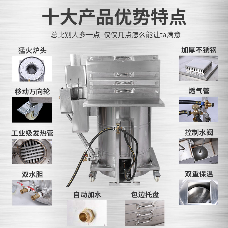 Crown-moving bowel powder steaming machine Guangdong colder commercial stall steamer automatic high-pressure drawer type enteric powder steamer steamer steamer