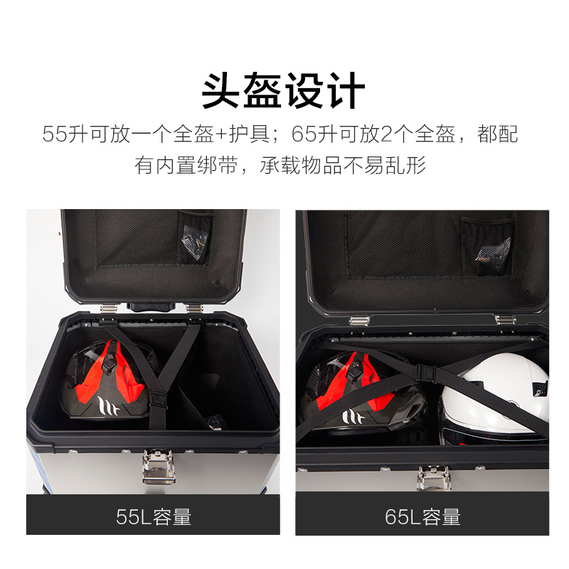 Locomotive trunk Blue Whale Aluminum alloy tail box quickly removes 55 liters maximum capacity 65 liters and put two full helmets