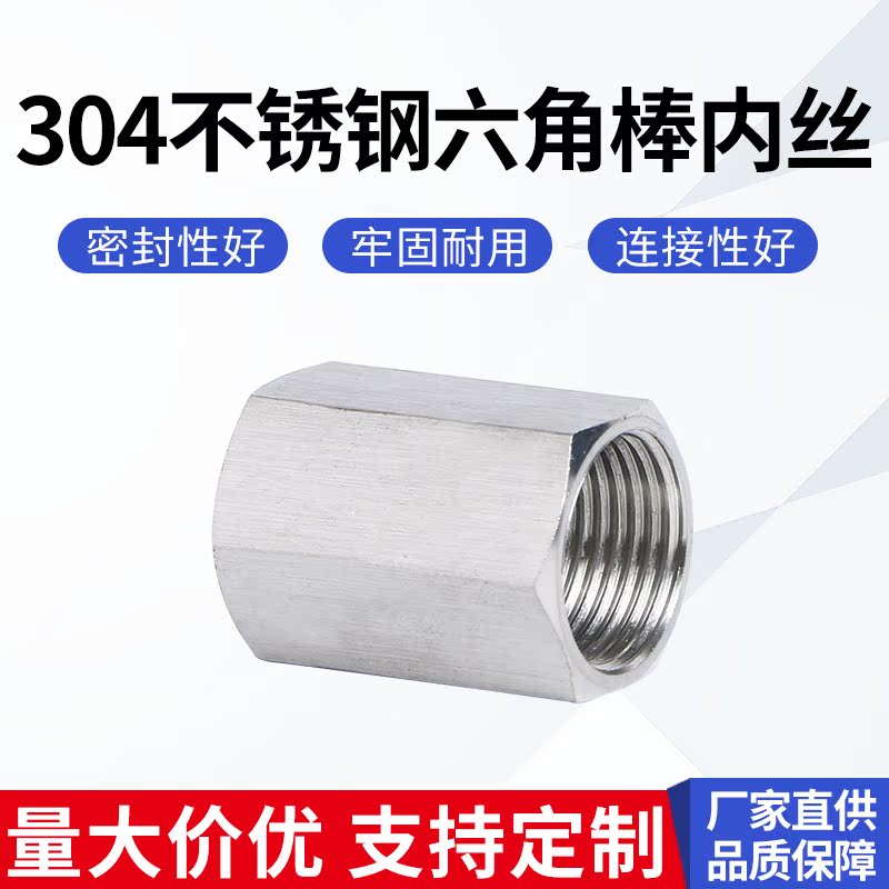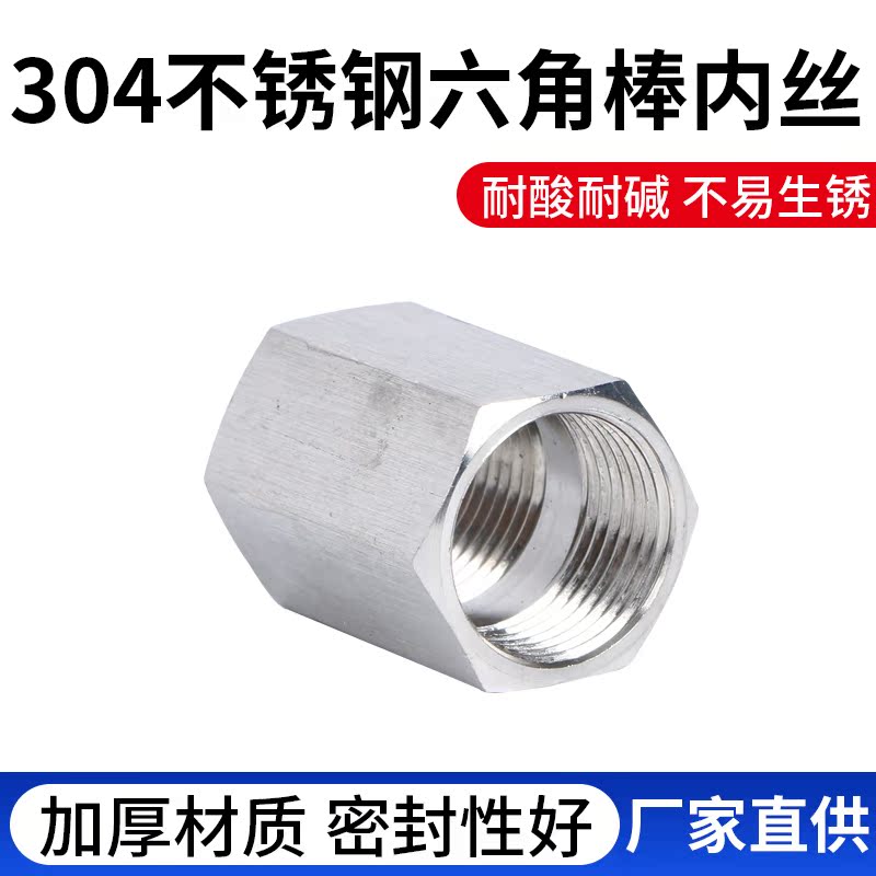 304 stainless steel hexagonal rod inner wire joint high pressure straight through inner thread CNC machining 1 2 3 4 tap