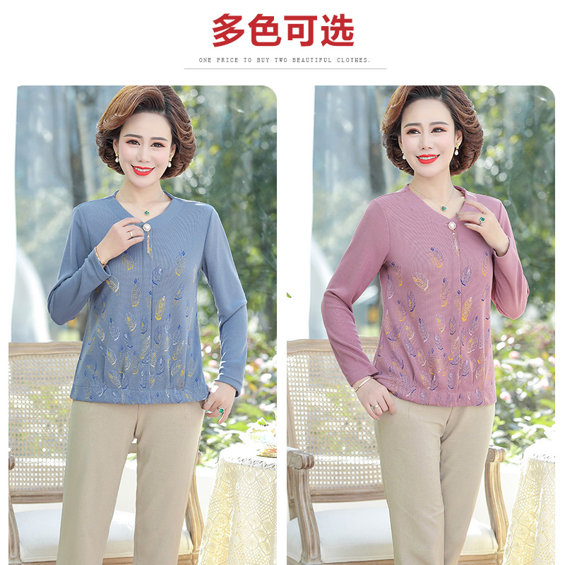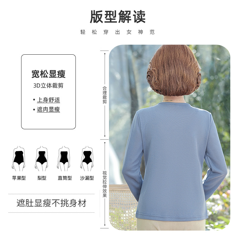Middle-aged and elderly mothers' autumn clothes bottoming shirt T-shirt middle-aged women's new fashion foreign style loose plus size long sleeves