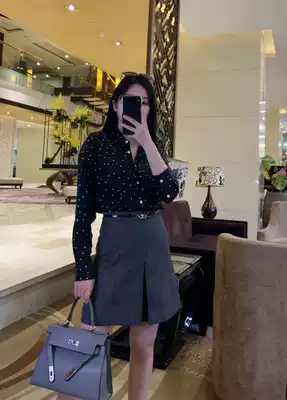 Handsome fashion personality gas field black silk shirt women long sleeve heavy mulberry silk top high end