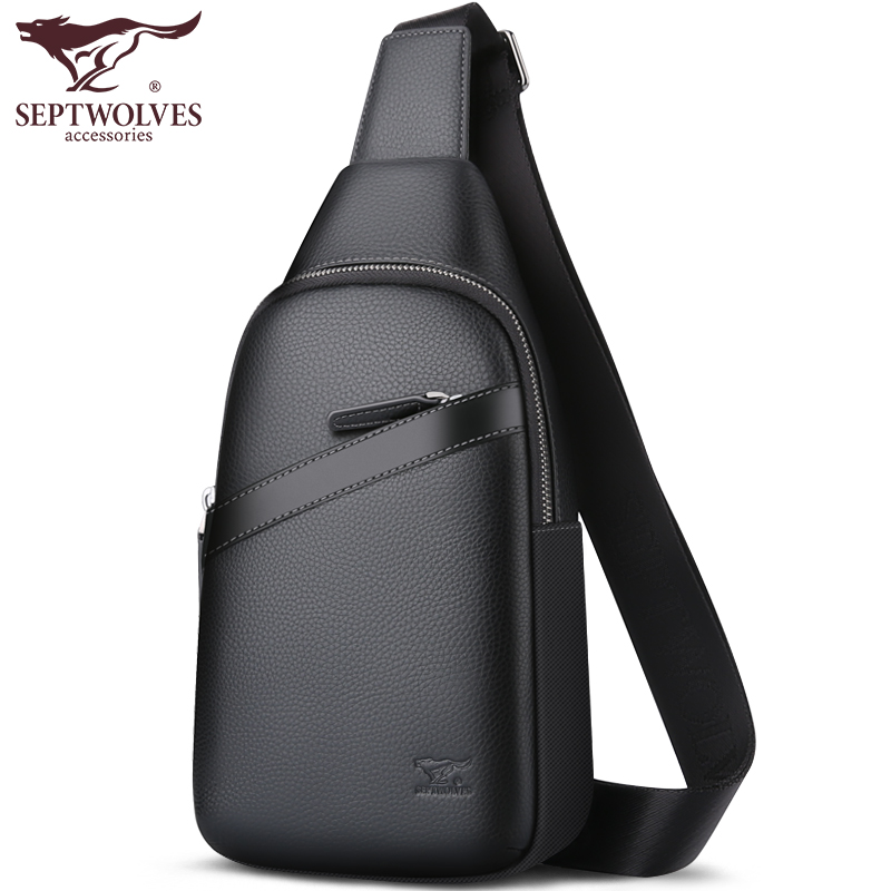 Seven Wolves Genuine Leather Men's Baotou Layer Bull Leather Chest Bag Men's Bag Chest Front Inclined Satchel Shoulder Bag Small Backpack Satchel Man-Taobao