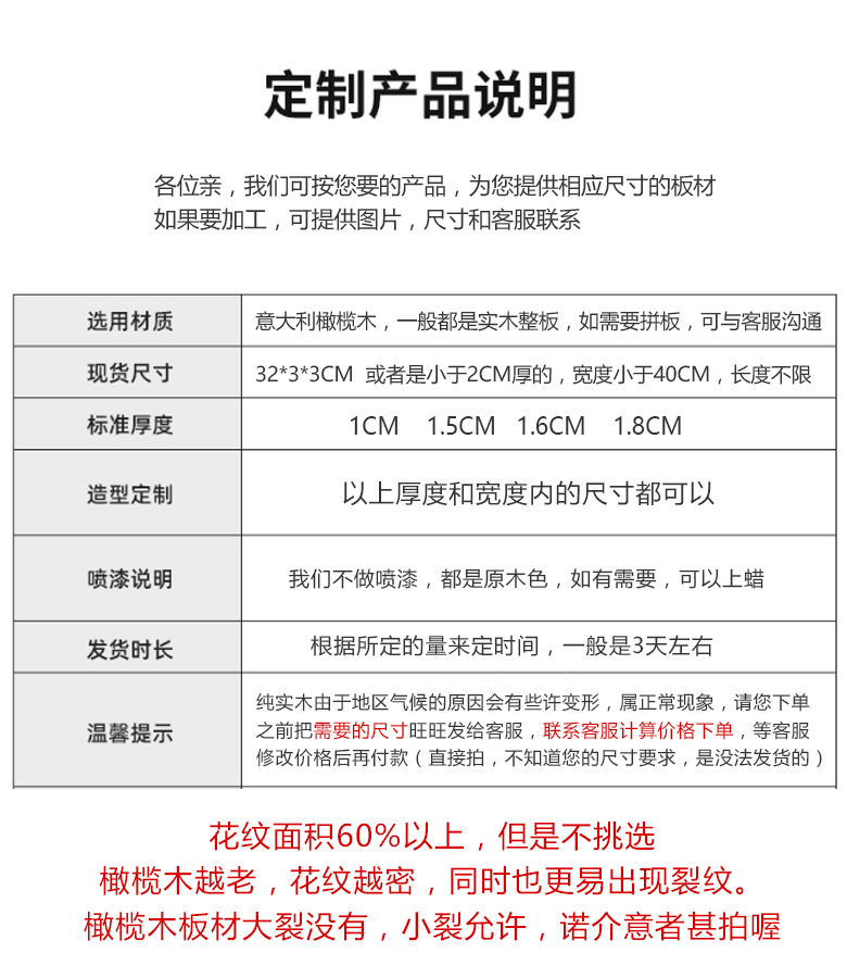 Italian Olive Wood Size Custom Solid Wood Whole Board Chopping Block Rolling Stick Cup Pad Manual Creativity