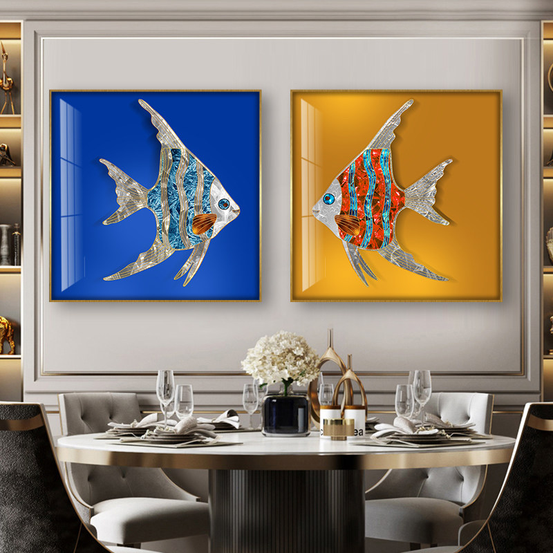 Ayma Orange Hall Restaurant Decorated Painting Modern Restaurant Hanging Table Wall Painting Year with Fish Two Pictures