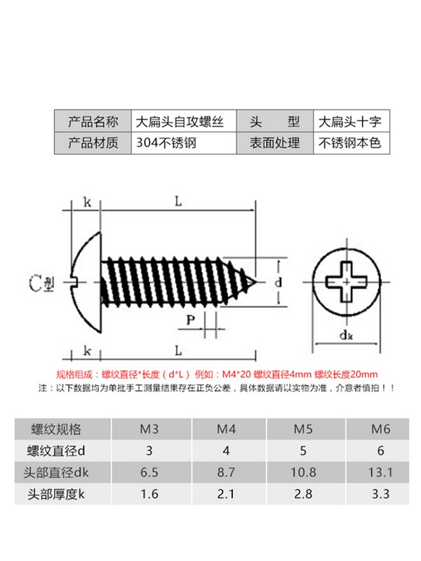 M5mm304 stainless steel large flat head self tapping screw mushroom head * 8 10 16-20-25-35-90