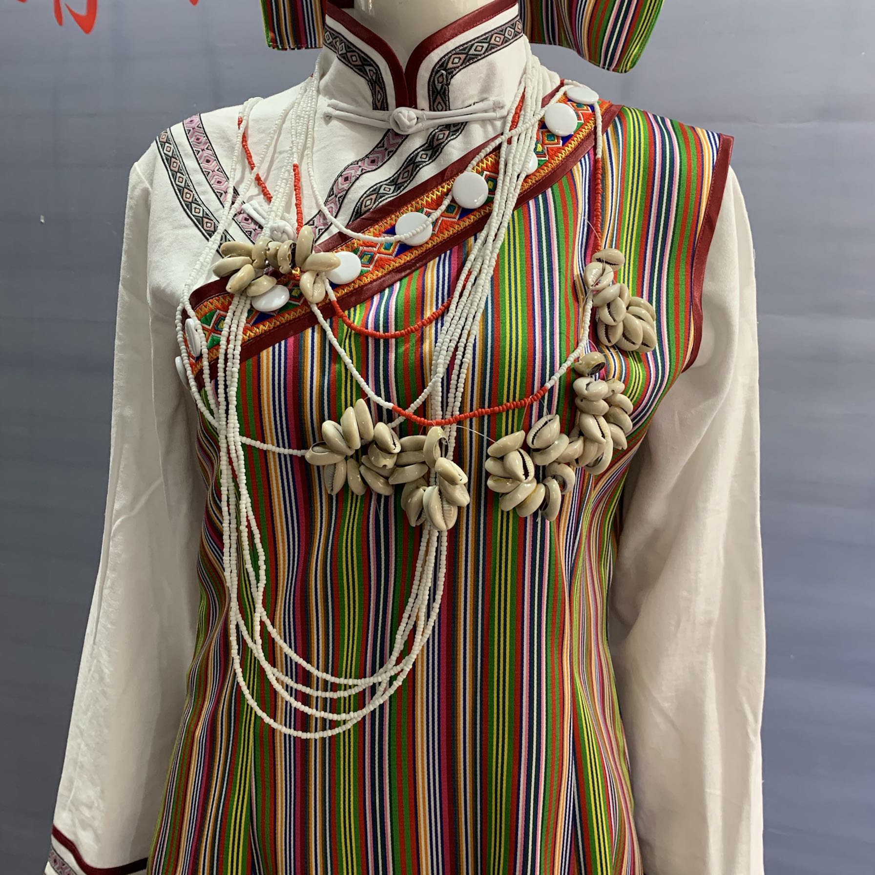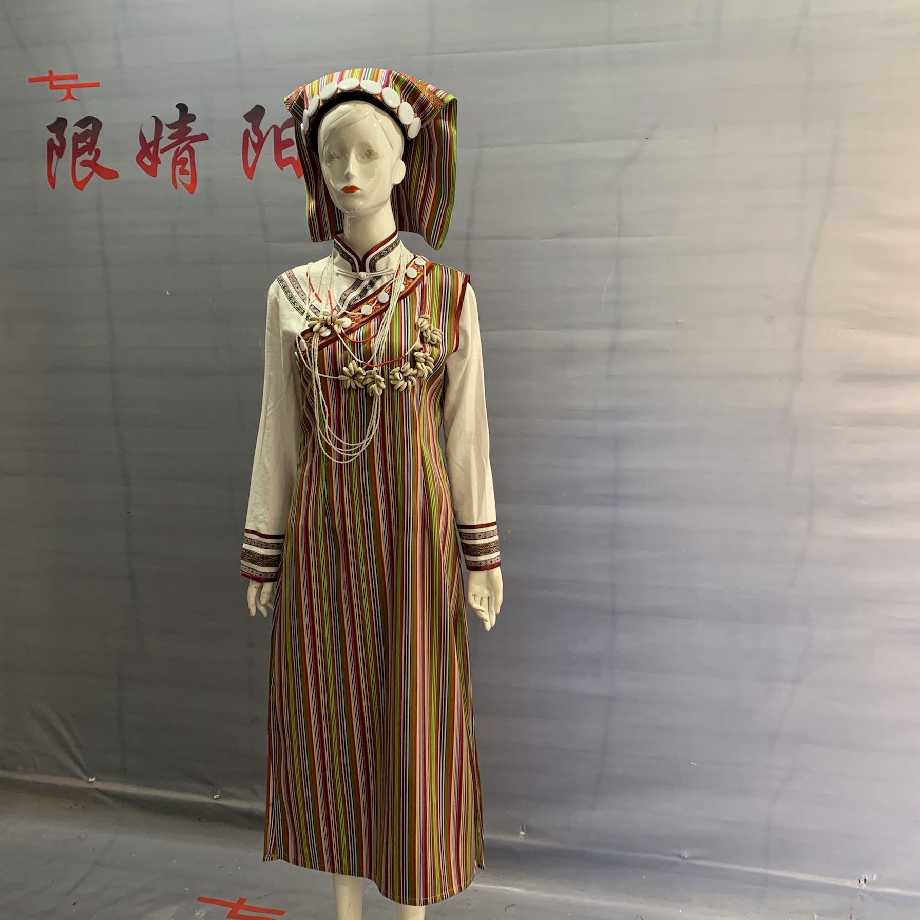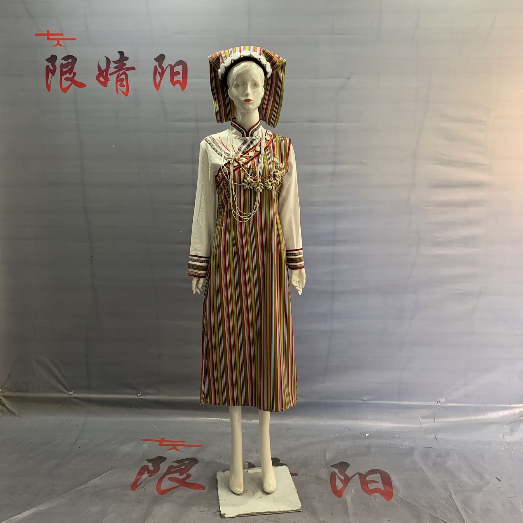 Limited to Jingyang to customize ethnic minority Dulong costumes featuring striped ethnic style dance performance costumes