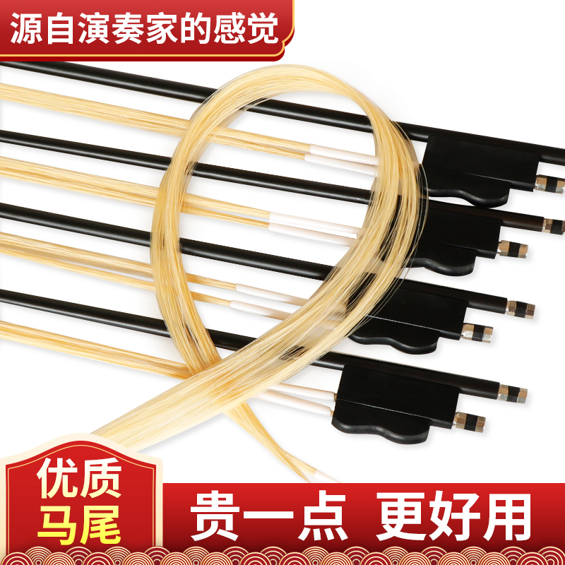 Natural ponytail black pole four Hu bow high pitch four Hu bow real ponytail professional bow factory direct sales four Hu accessories