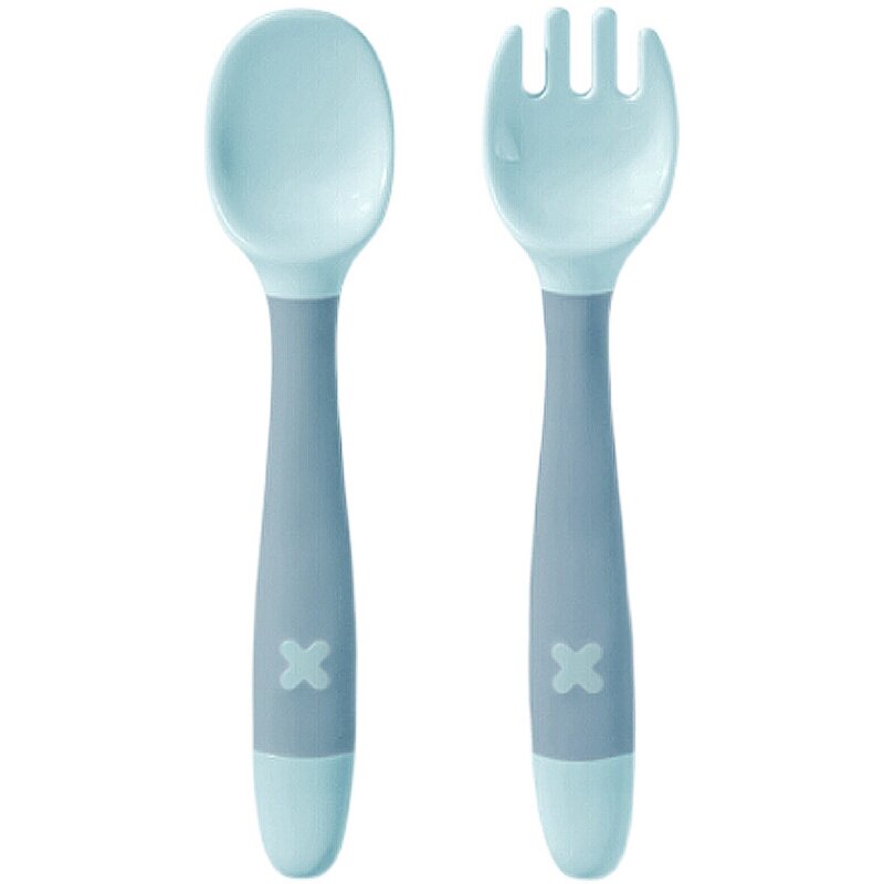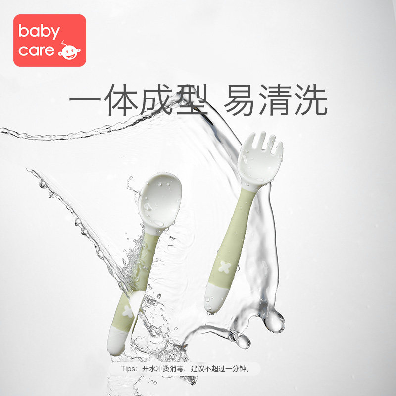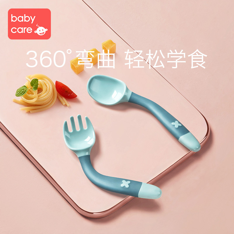 babycare Baby learning to eat training spoon elbow fork spoon set Baby auxiliary food spoon curved children's tableware