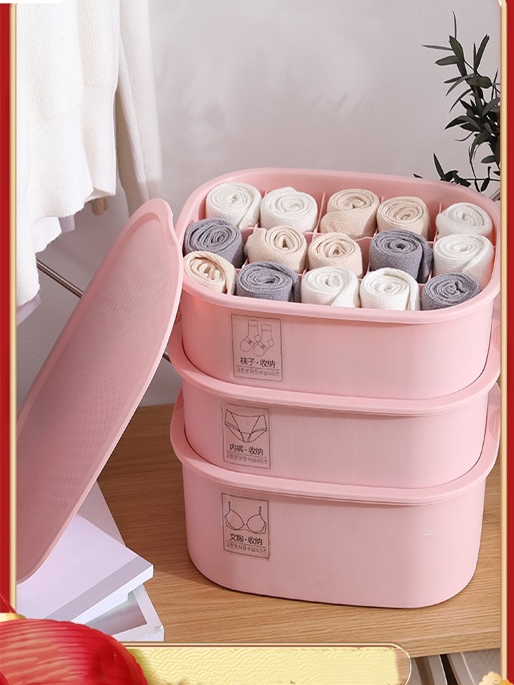 Underwear containing box Three-in-one division of plastic household covered drawer-type socks containing deviner finishing box