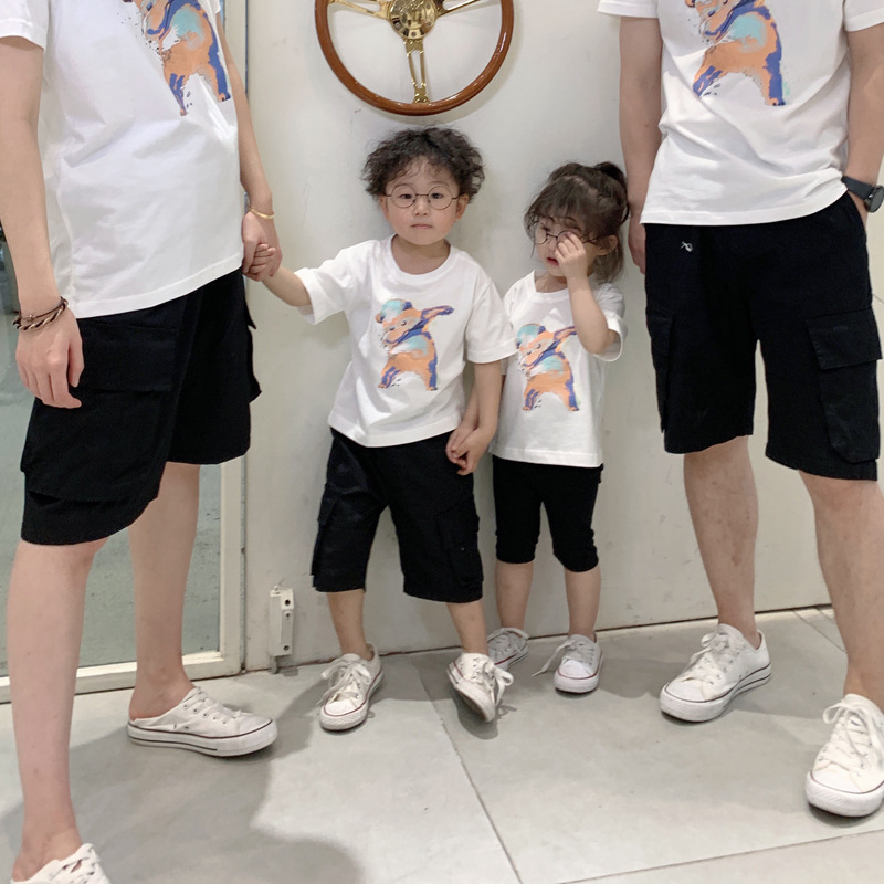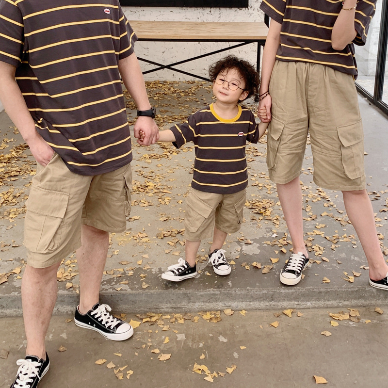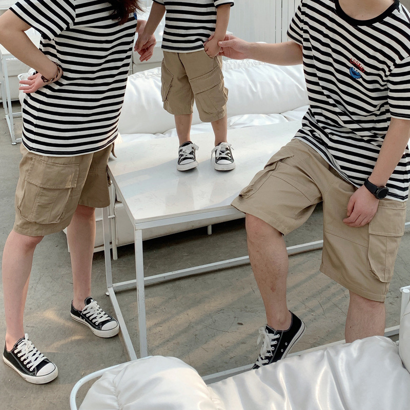 Parent-child clothing loose overalls shorts 2022 summer family clothing pure cotton casual pants mother and daughter father and son clothing five-point pants tide