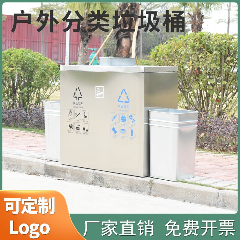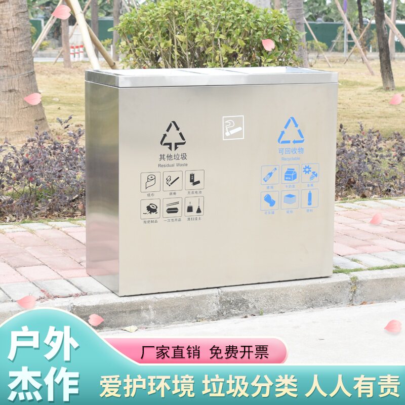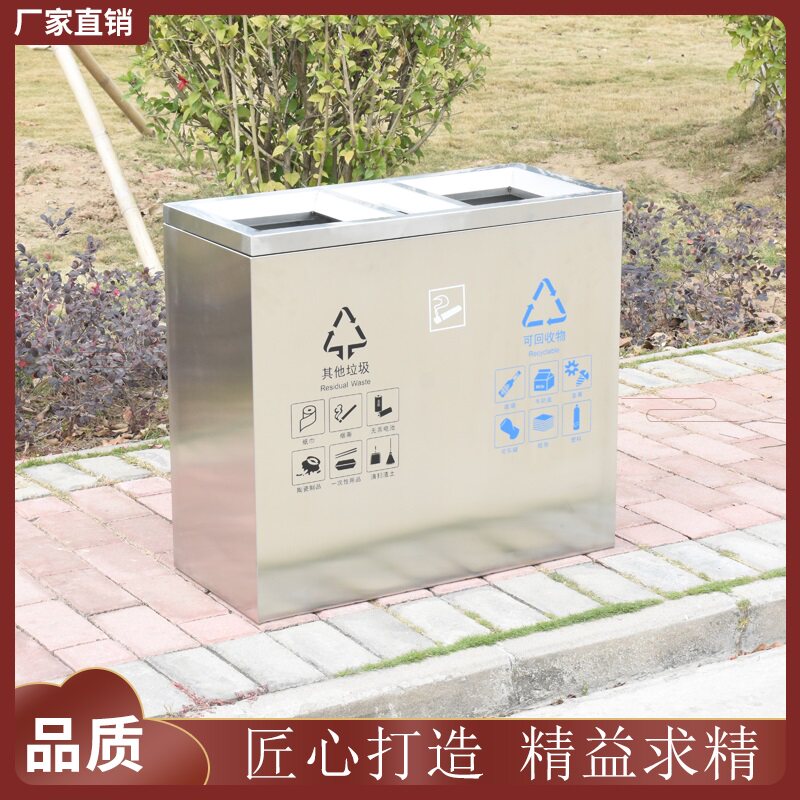 Stainless steel sorting trash can community park with ashtray storage bucket shopping mall hotel uses vertical corrosion-resistant bucket