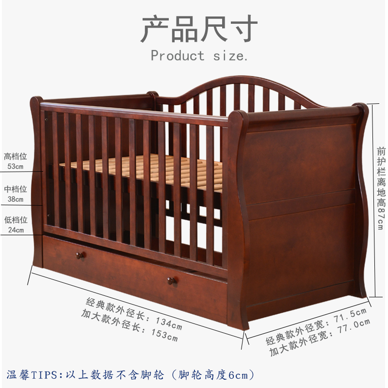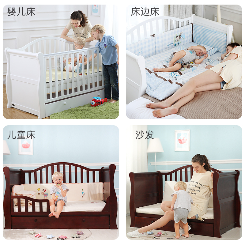 Nordic solid wood crib multi-functional baby bed newborn splicing big bed into children's bed sofa lengthened and widened