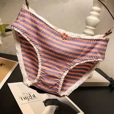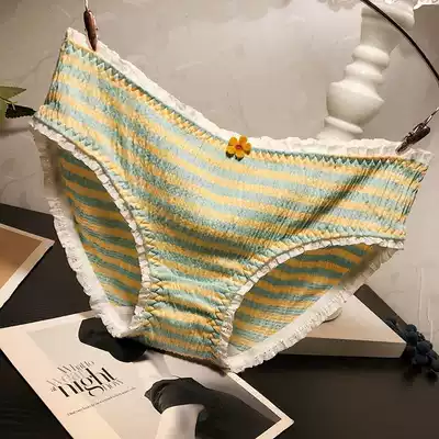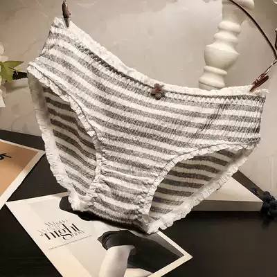Sweet girl cotton fabric panties Feminine low waist fashion striped lace comfortable briefs cotton crotch