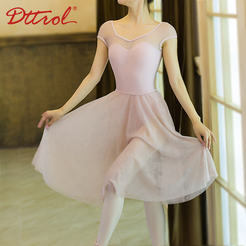 Dance practice body artwork for adult ballet practice in lace splicing long skirt suit