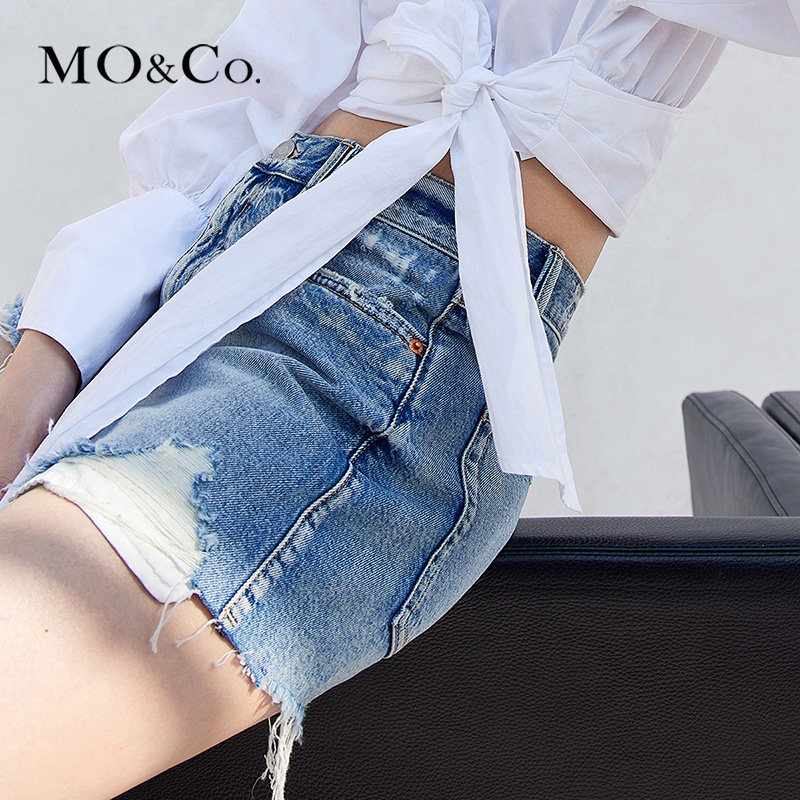MOCO 2021 summer new handmade washed Su denim hot pants shorts MBA2SOT011 Mo Anke