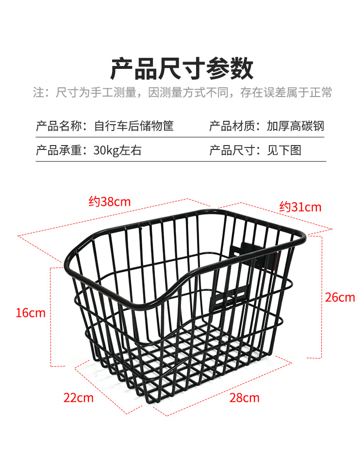 Bicycle rear basket enlarged rear with school bag basket mountain bike Lou folding electric vehicle basket student metal basket