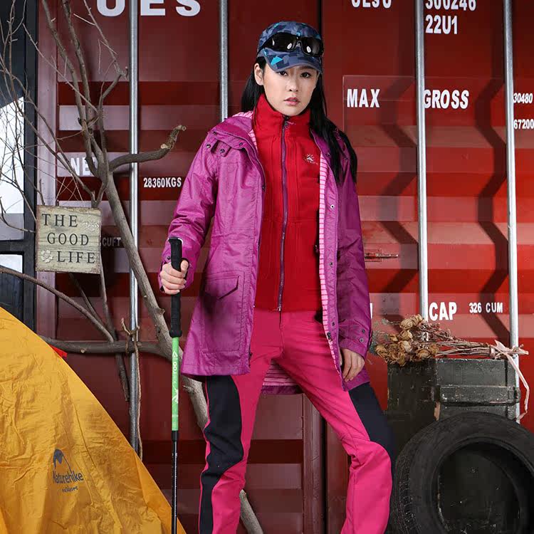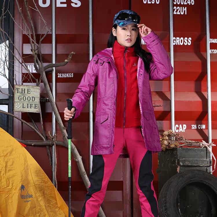 Outdoor sports submachine clothing Female spring jacket Three-in-one detachable rocking grain suede thickened waterproof two sets of clothing