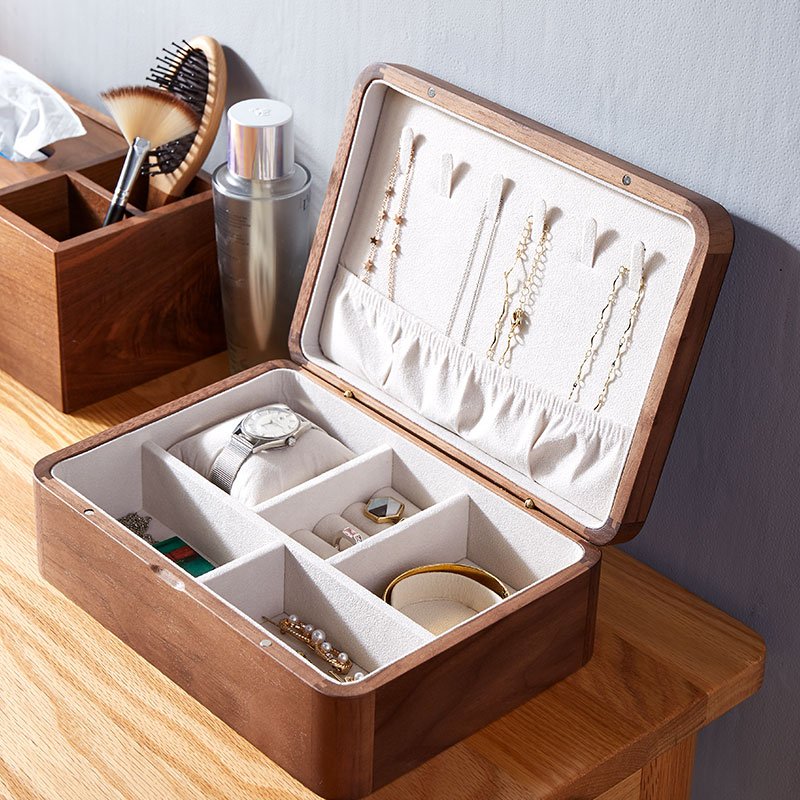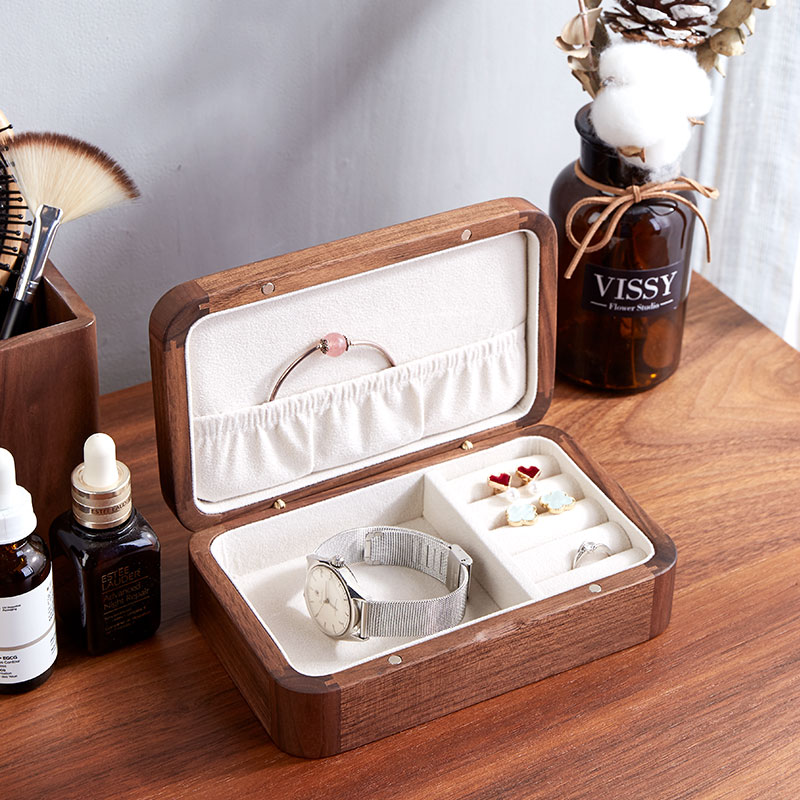 MUSOR jewelry box Walnut mortise and tenon high-grade hanging necklace ear needle ring Portable travel jewelry storage box