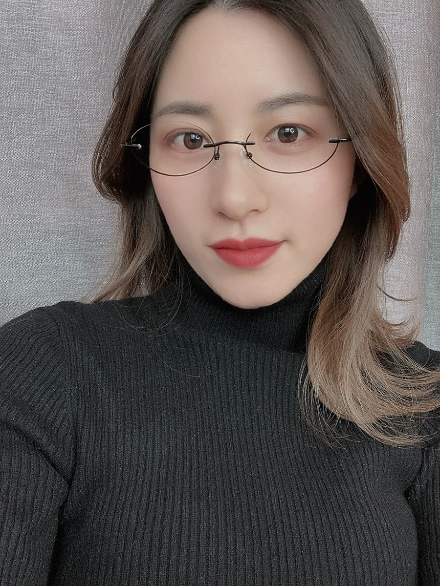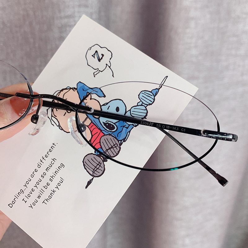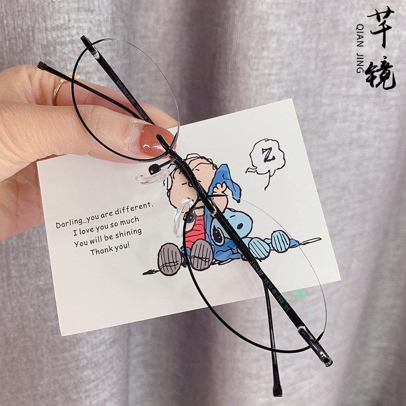 Qian mirror customized lower half frame myopia glasses female pure titanium ultra light lower frame oval frameless glasses trendy two-dimensional