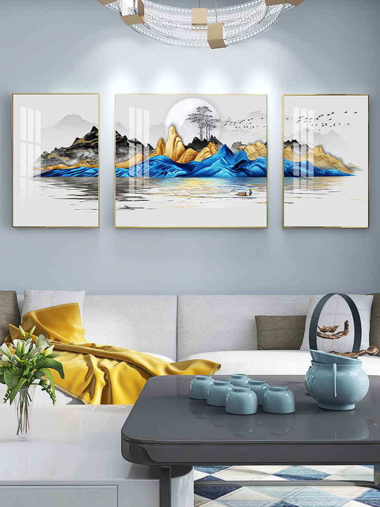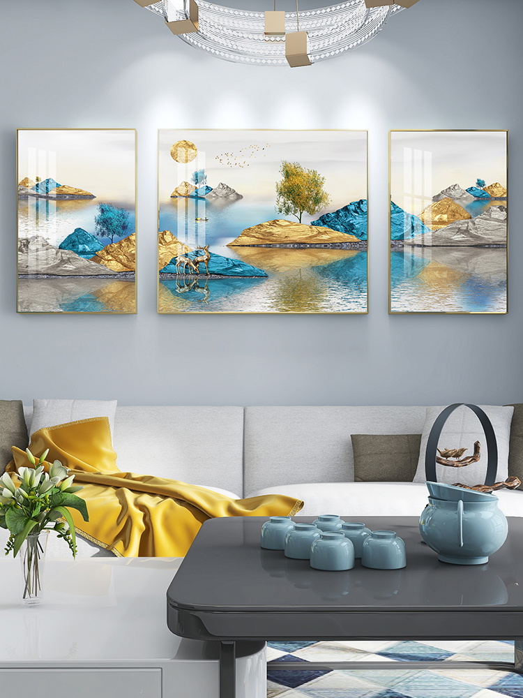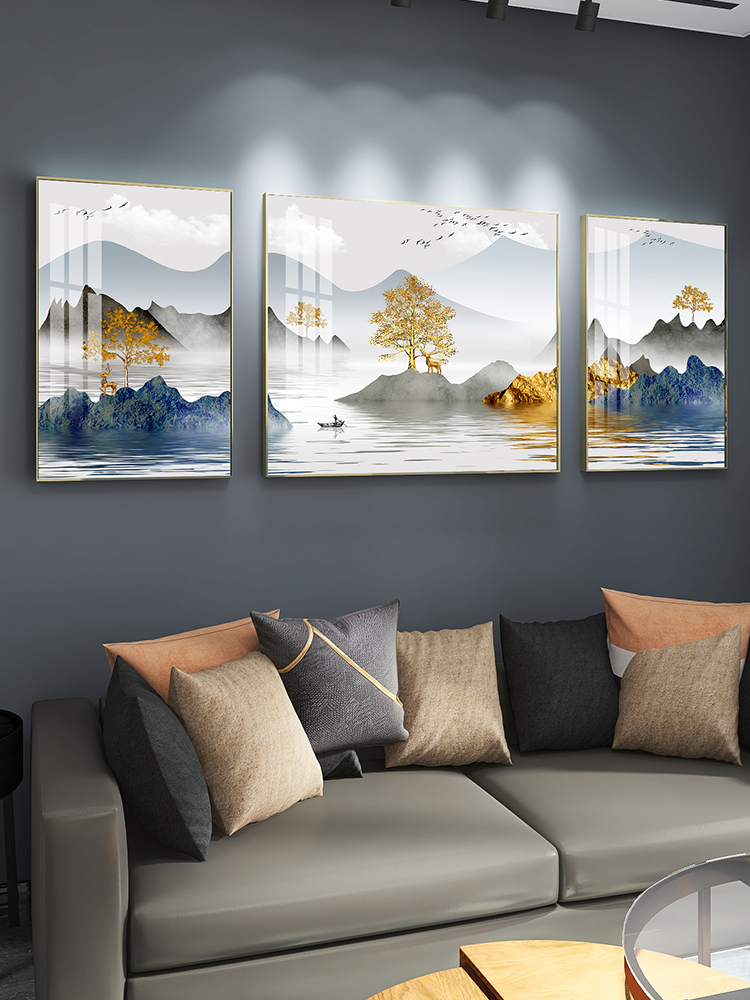 Living Room Decoration Painting Atmospheric Landscape Painting Sofa Background Wall Triptych Modern Minimalist Wall Painting Light Extravagant Painting Fresco