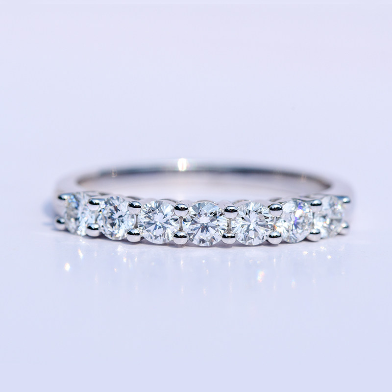 18K white gold row diamond ring Jurchen diamond ring 10 points diamond ring one carat seven diamond row ring 7 princess stacking women