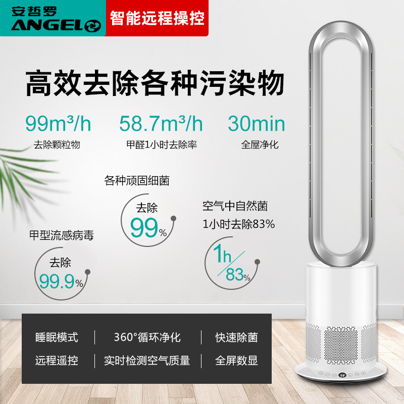 Angelo intelligent air purification leafless fan Household vertical ultra-quiet leafless electric fan Cold and warm dual-use