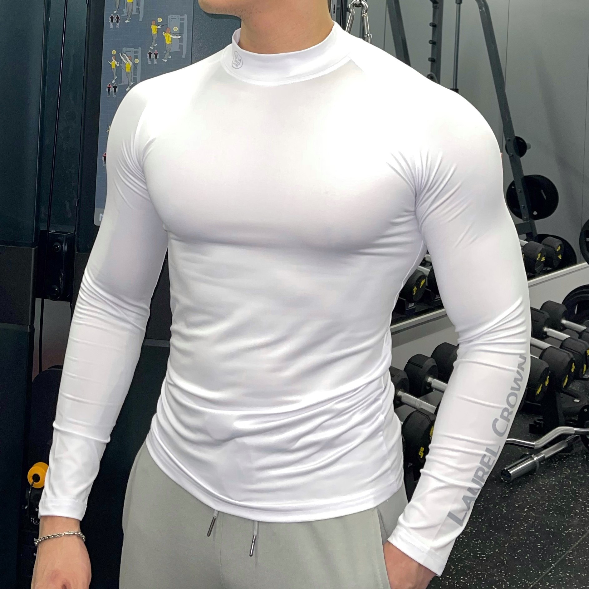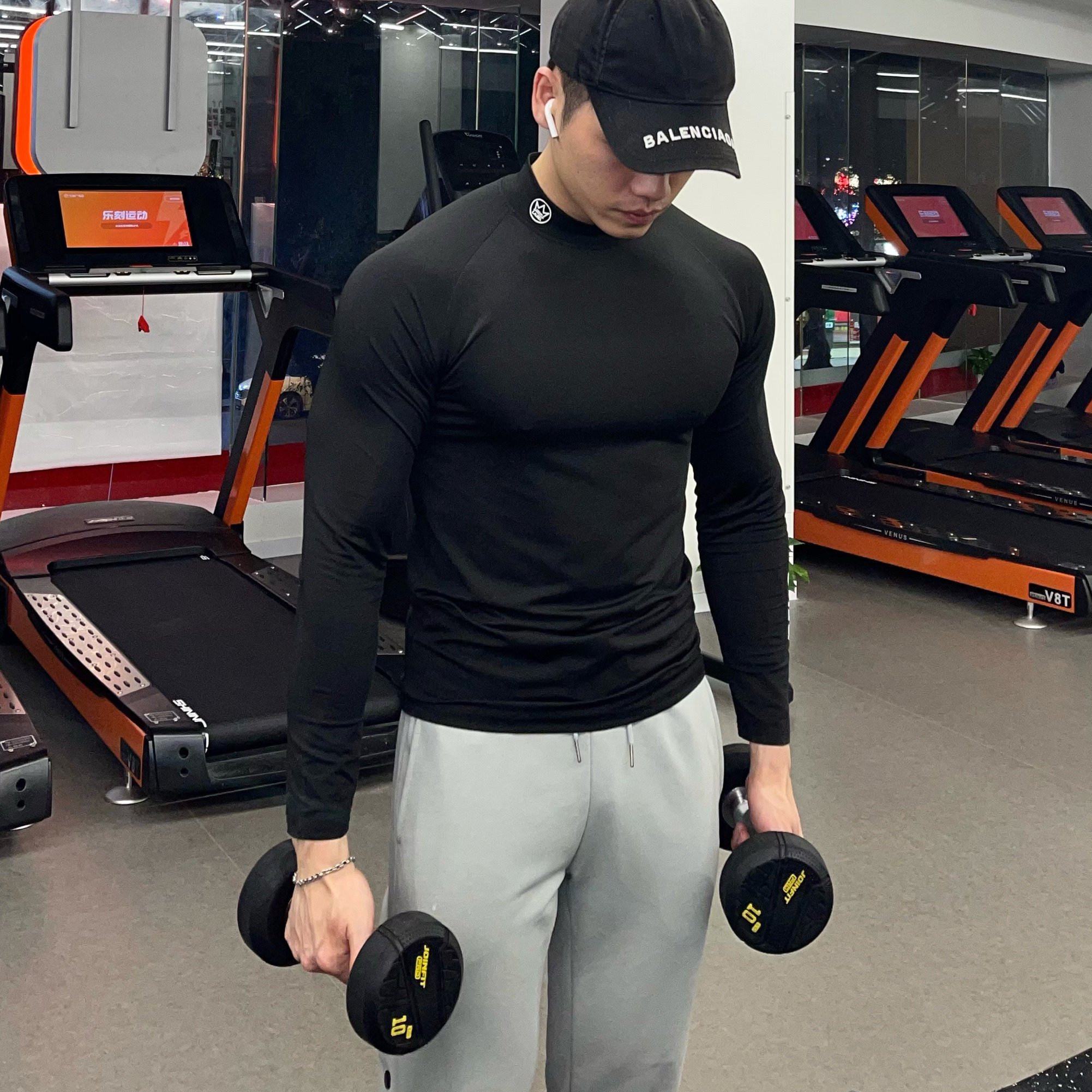 Fitness training long sleeve jacket breathable elasticity moisture absorption perspiration quick-drying tight high collar muscle brother tide