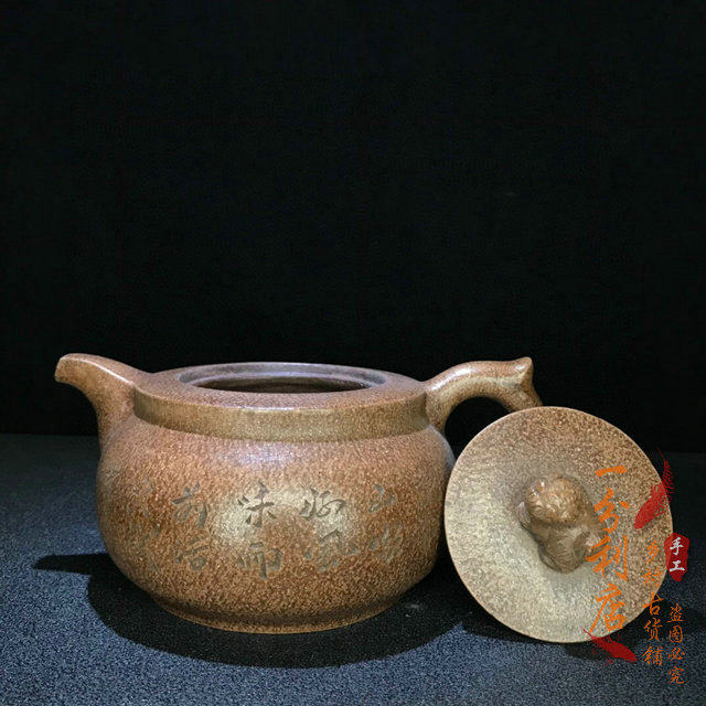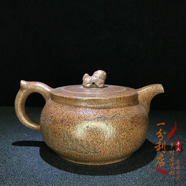 Yixing purple sand pot pure handmade folk famous painting lion button original ore old mud household tea set inventory teapot