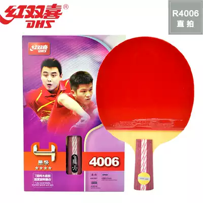 Red double happiness table tennis racket four-star hurricane 4002 4006 student children beginner straight horizontal table tennis racket
