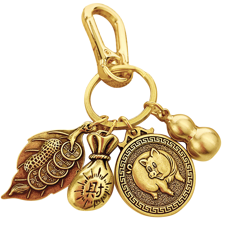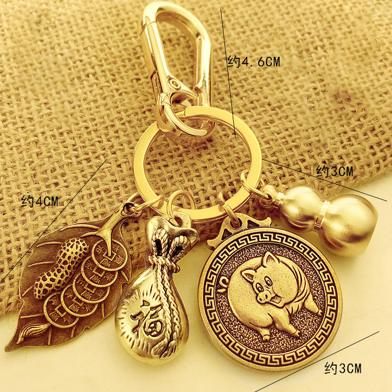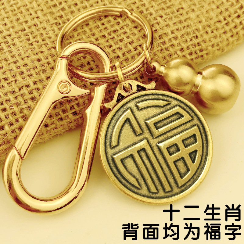 Pure copper zodiac creative pendant overnight fortune men and women fortune transfer car keychain gourd hanging ornament