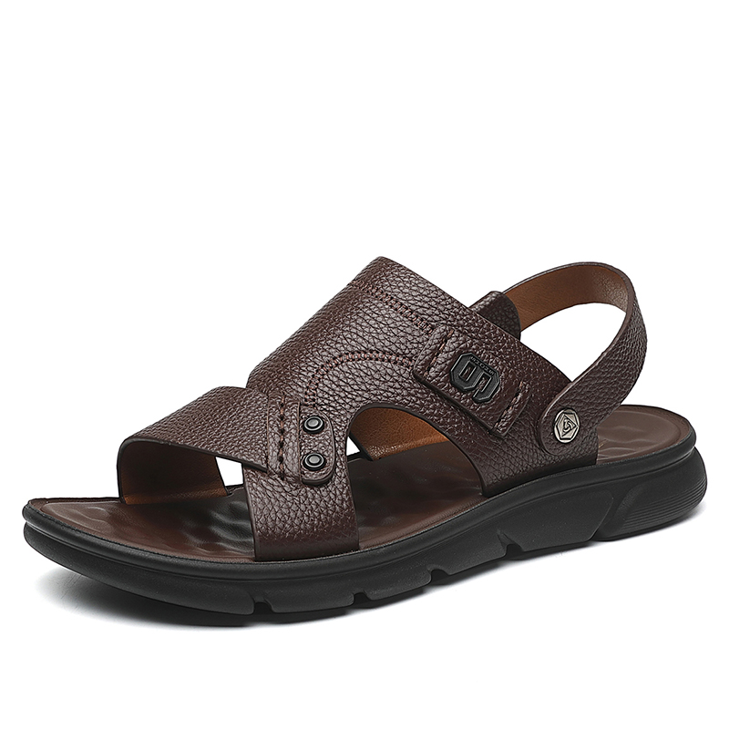 Men's Sandals 2022 New Leather Sandals Men's Leather Summer Outer Wear Full Leather Sandals and Slippers Shoes Dual Use Dad Sandals