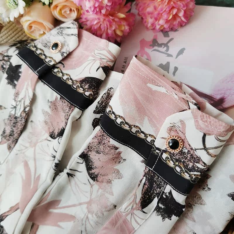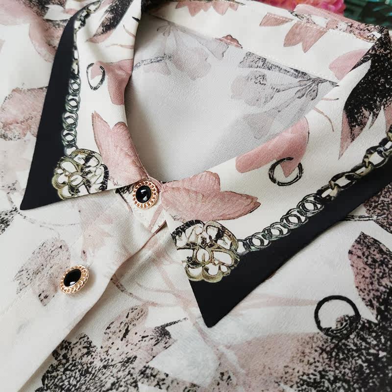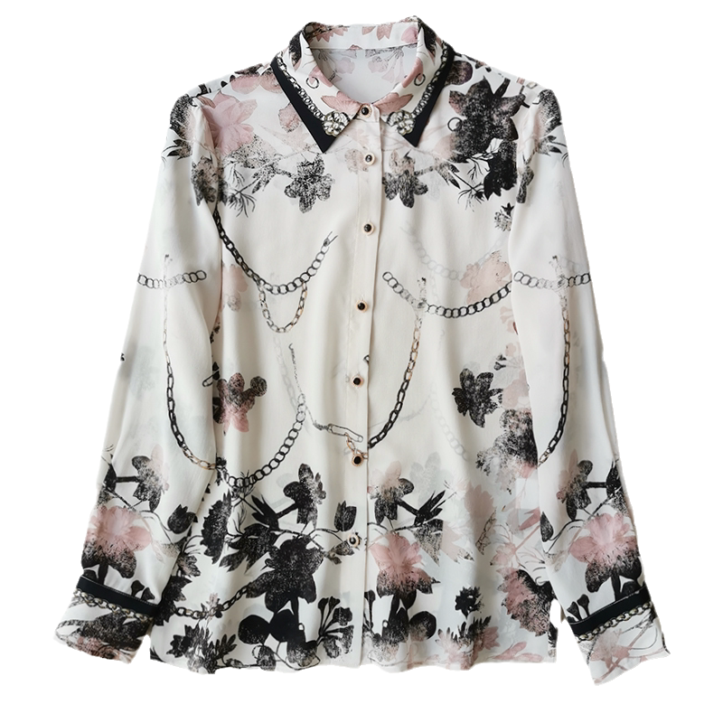 Upper body beauty drunk chao good match with water ink laminated dye printed real silk shirt woman long sleeve mulberry silk shirt