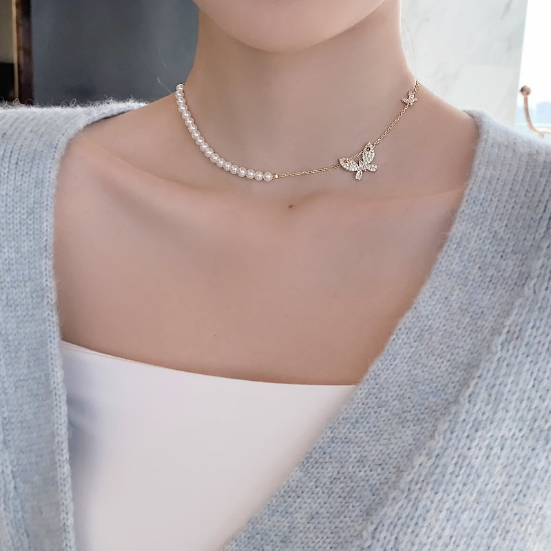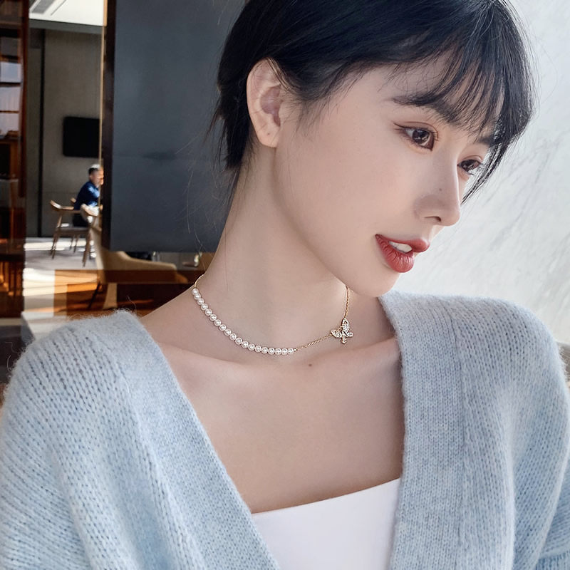 Butterfly Pearls Lock Bone Chain Light Extravagant And Small Crowdnecklace Women Ins Lukewarm Nature 2021 New Accessories Summer