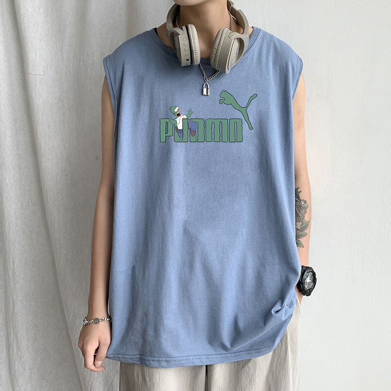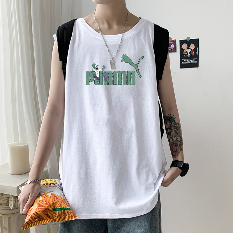 Vest men's tide summer cotton loose sports hurdles sleeveless T-shirt outside wear black Harbor trend brand cane shoulder top