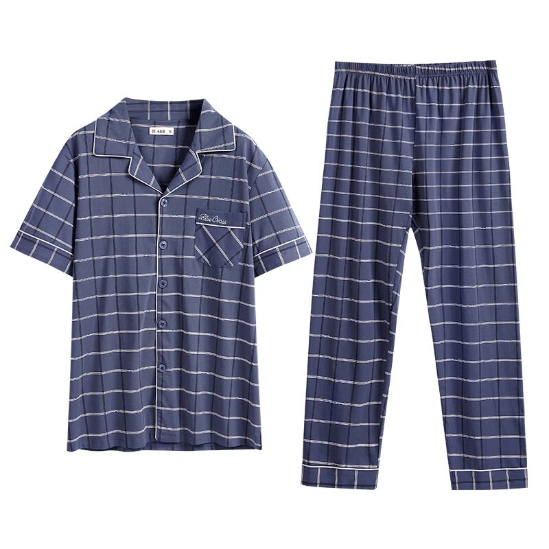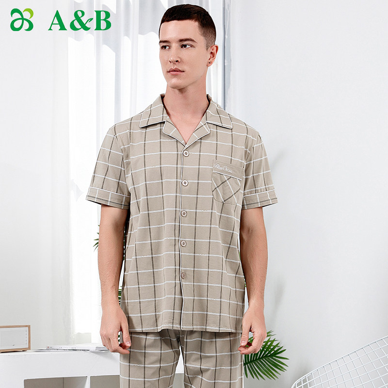 ab underwear pajamas men's combed cotton lapel cardigan living room short-sleeved trousers men's home suit G697