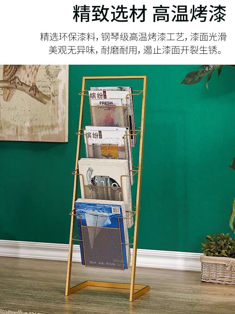 Nordic wrought iron floor magazine rack information storage shelf books and newspaper brochures exhibition shelf bookshelf simple newspaper shelf