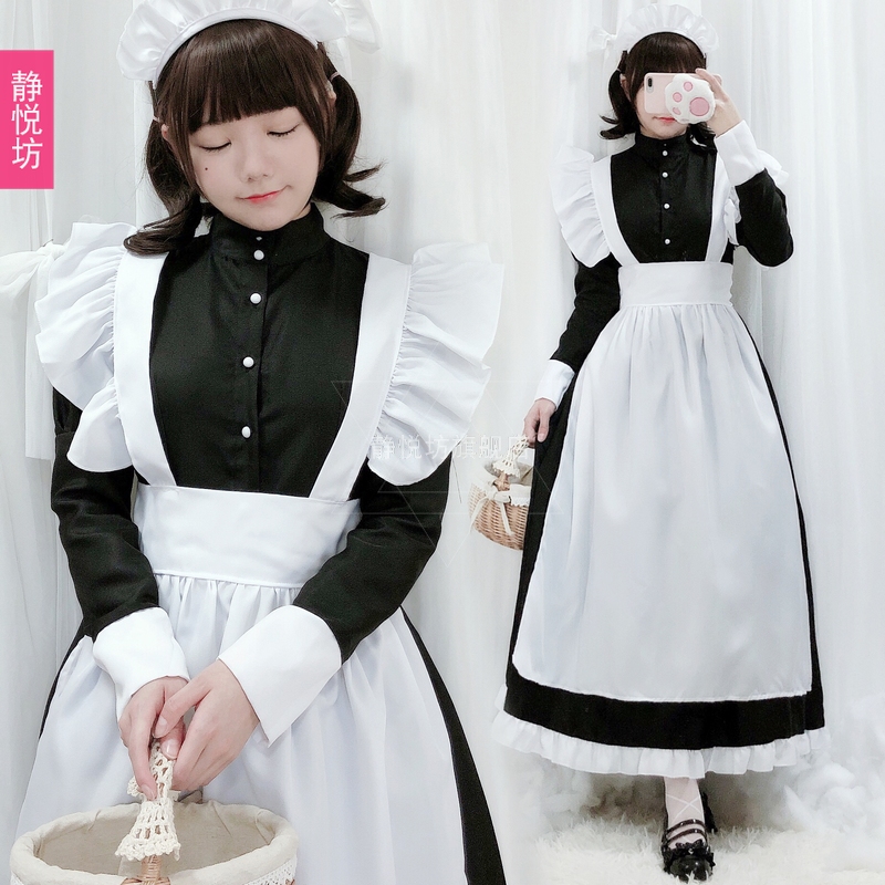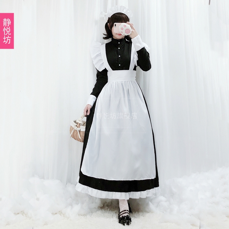 Black and white maid dressed as secondary girl big girl lolita long role playmaid dressed in café uniform