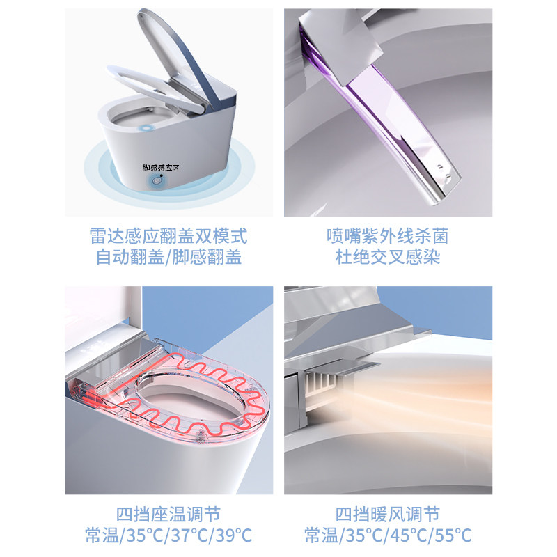 Remote control Drying Water temperature adjustment Hip washing Female washing Seat heating Water pressure adjustment Nozzle self-cleaning Automatic deodorization Nozzle mobile cleaning